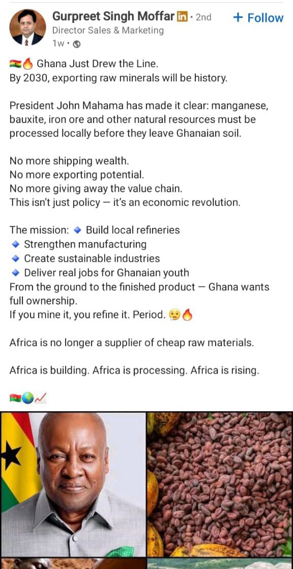 This is an initiative by the Ghana President His Excellency John Dramani Mahama in a quest to process Ghana raw materials into finish products before exporting them to the international market arena.